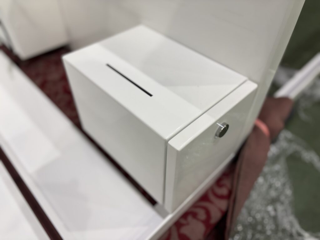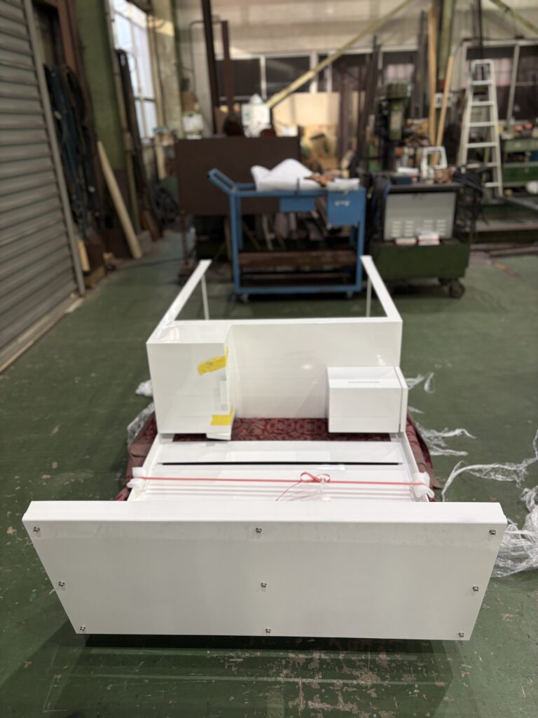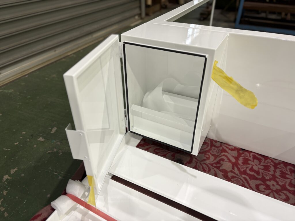 Mount Tech had the pleasure of manufacturing the installation table that combines the storage box for the scallop shell ema and the donation box into one unit.