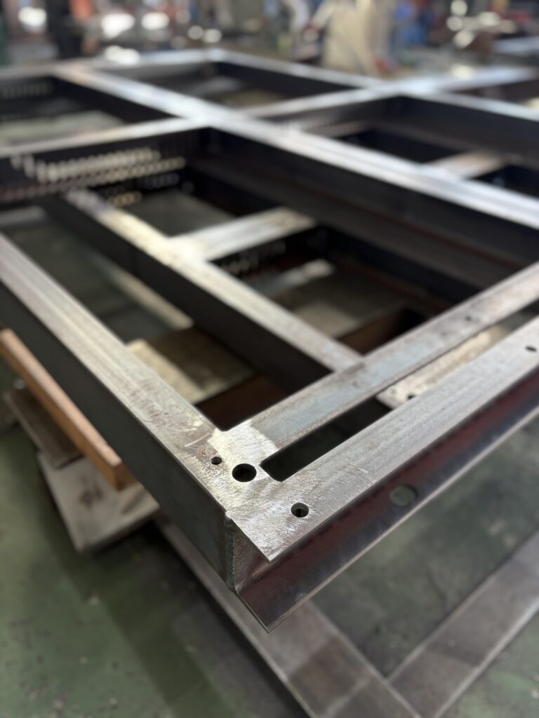哀愁を帯びた架台。架台はさまざまな産業で利用されている。工作機械、工場設備、ロボットの固定用、エアコンの室外機などなど、多岐にわたる。写真のものは、配電盤・キュービクルの基礎部分に設置され、この上には配電盤・キュービクルが設置されます。架台は、主役ではなくただの脇役。でも、それが無いと主役が立ちません。そんな架台を我々は丁寧に作っています。寸法精度、角度、平面度、溶接の美観、過剰と言われる考えもあるかもしれないが、これまで77年間、品質を高め続けてきた。いま思うのは良いものを認めてくれる場所が間違いなくあるのだと感じる。日本の繊細な物作りを継承していく責任がある。 There’s a quie...
