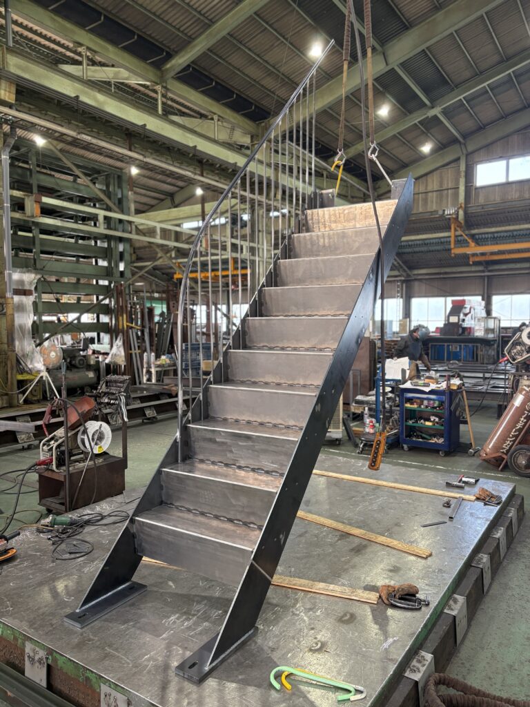 #スチール階段 #高級住宅 #鉄製階段 スチール製の階段を作らせてもらいました。高級住宅に納められるようです。S課長、A主任、Yくんがとても丁寧に作ってくれました。丸パイプが曲線のアーチを描いているのは協力会社さんで曲げてもらいました。いろいろな手が加わってとても素敵な階段が完成しました。こういったお仕事はとても楽しいですね。 We had the opportunity to fabricate a steel staircase, which will be installed in a luxury residence. It was carefully crafted by...